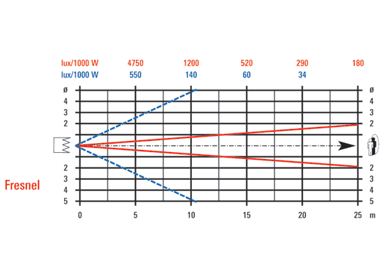 Technische Daten:Stromversorgung 230V 50/60HzLampe GX9,5 650/1000W 220VGewicht 6kgMittlere Einsatzentfernung 5-17m Schwenkbereich +45 °-90 ° Abstrahlwinkel Min/Max 8,5 °-50 °